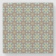 A decorative coaster featuring a symmetrical geometric pattern with blue, white, and brown hues shown from the front and back on a gray background.