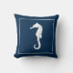 White sea horse on navy blue background. See all the coordinating pillow designs and art prints at Sandy Feet Studios.