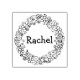 Simple decorative hearts and flower wreath and name stamp reads Rachel or personalise with your own choice of name or text. Design and artwork by Sarah Trett. www.sarahtrett.com for www.mylittleeden.com
