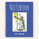 Painting and Decorating theme notebook for decorators with cartoon cover of a decorator painting a door. Ideal product for any painter and decorator. Add name.