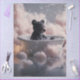 A dreamy black bear cub lounges in a white bathtub floating among soft, cloud-like bubbles, as if bathing in the sky itself. Transparent soap bubbles drift through the air while glowing constellations twinkle in the dusky background, creating a magical, star-kissed atmosphere. A yellow rubber duck adds a playful touch, and nearby, a glowing orb and tiny bottle complete the surreal scene. This enchanting image blends rustic charm with celestial fantasy—perfect for whimsical nursery decor, dreamy DIY projects, or nature-inspired decoupage art.