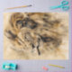 The image is a captivating close-up of a lion's face, with a focus on its mane and eye. The lion's mane is depicted with a combination of detailed brush strokes and abstract elements, creating a dynamic and artistic appearance. The colours used are primarily shades of brown, beige, and white, blending together to form a textured and visually engaging composition. The partially visible eye adds depth and intensity to the image, making it both realistic and abstract. This unique artwork stands out due to its combination of realism and abstract art, making it a fascinating and captivating piece.