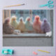 pastel chickens on windowsill, funny farmhouse bathroom art, whimsical chick photo, rustic toilet paper humor, dyed fluffy chickens indoors, cottagecore spring décor, DIY decoupage animal image, surreal farm animal scene, RHDesigns by 2ChattyChicks artwork, humorous poultry craft image