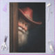 With wide blue eyes and a puckered expression, this cowboy Santa peeks from behind a weathered wooden door like he’s just spotted a holiday surprise—or a cookie thief. His red wide-brimmed hat, round eyeglasses, and full white beard give him classic Claus energy with a western twist. The dramatic lighting and rich textures make this piece a standout in any rustic or whimsical holiday collection.