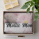 The image shows a young calf named Mollie Moo with a light brown, fluffy coat. The calf is wearing a pink headband with a large bow that has a floral pattern. In front of the calf is a large, decorated egg with a similar floral pattern, surrounded by pink flowers. The background is a soft, pastel-coloured abstract design, which complements the overall gentle and whimsical theme of the image. Customisable decoupage designs.