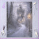 This serene winter scene features a fairytale princess castle nestled deep within the snowy forests of Ireland. A winding path leads through tall, bare trees dusted with snow, illuminated by vintage lanterns that cast a warm, golden glow. The castle’s glowing windows and elegant spires evoke a sense of royal enchantment, as if awaiting the return of a moonlit carriage or a whispered wish. Perfect for magical winter decoupage and mixed media, this design blends soft light, storytelling charm, and the timeless beauty of an Irish fairytale landscape.