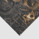 faux finish with stencil, intricate gears; mechanical components; clock mechanism; metallic tones; gold and bronze; textured background; steampunk aesthetic; artistic mechanical elements.