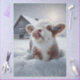 highland calf, Snowy calf decoupage paper design, rustic barn winter animal art, fluffy cow seasonal craft sheet, whimsical calf in falling snow, cozy farmhouse journal cover paper, rural barnyard winter scene sheet, heartwarming animal holiday decoupage paper, soft glow snowy calf image, exclusive RHDesigns winter animal design, tranquil rustic snow-covered barn art.