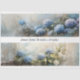 • Design: Blue and purple hydrangeas with soft foliage and pastel background