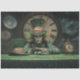 St. Patrick’s Day decoupage paper, fantasy hatter artwork, Irish green costume design, whimsical holiday décor, surreal clock background, moonlit fantasy illustration, mixed‑media St. Paddy’s Day sheet, bold green decoupage design, magical Irish theme art, furniture art supplies, storybook fantasy décor.