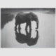 A majestic African elephant stands at the edge of a waterhole, its reflection mirroring its powerful form. The black and white image creates a striking contrast against the serene water, highlighting the elephant's intricate details and the beauty of the natural world. This photograph captures the raw power and elegance of this magnificent creature.