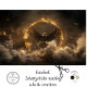 The image showcases a majestic eagle with its wings fully outstretched, placed dramatically at the centre of a glowing, fiery ring. The background is dark and filled with swirling smoke and debris, creating an intense and dynamic atmosphere. Surrounding the eagle, several smaller birds are seen in flight, adding movement and life to the composition. The intricate details of the eagle's feathers and the radiant golden hue of the fiery ring contrast sharply with the dark, smoky backdrop, making the scene both powerful and visually striking.