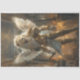 Celestial Guardian Leo is a majestic lion angel, embodying both strength and serenity. Adorned in ornate golden armour with intricate designs, Leo stands upright with a regal presence. His white wings spread wide, symbolising purity and divine protection. Draped in a flowing white cloth, he exudes an aura of grace amidst the chaos of a burning palace or temple. The serene expression on his face contrasts with the fiery background, highlighting his role as a beacon of hope and strength in times of turmoil. Digital art created by RHDesigns for use for furniture flippers as decoupage, canvas, poster art and home decor.