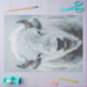 Unused bedroom fireplace inspired by Leonardo David is red chalk drawings. Absolutely so proud and the overall result total success Magical at night so warm and comforting. Slight differences in depth of colour between sheets but perfectly acceptable as it is bespoke printing.Thrilled.