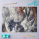 Unused bedroom fireplace inspired by Leonardo David is red chalk drawings. Absolutely so proud and the overall result total success Magical at night so warm and comforting. Slight differences in depth of colour between sheets but perfectly acceptable as it is bespoke printing.Thrilled.
