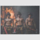 A fierce, high‑heat firefighter scene built for bold, dramatic projects. Three muscular, tattooed firefighters stand in front of roaring flames, helmets on, axes in hand, suspenders low across soot‑streaked skin. The fire behind them throws intense light and smoke, creating a powerful contrast that amplifies the grit, strength, and raw hero energy of the moment. This design delivers heat, attitude, and a striking visual punch — perfect for anyone wanting a dramatic, masculine, firehouse‑themed aesthetic.