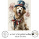 patriotic golden retriever art, Americana dog design, 4th of July decoupage paper, USA celebration craft paper, 250th American Celebration, red white and blue fireworks art, patriotic dog illustration, festive Americana décor, Independence Day craft supplies, patriotic mixed media paper, high‑resolution decoupage sheets, RHDesigns by 2ChattyChicks, patriotic wrapping paper art, dog and flag artwork