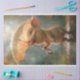 “Rainy Day Guardian”: This whimsical piece features an adorable pig standing upright on its hind legs, holding an umbrella. The setting is a serene forest with rain gently falling, creating a peaceful and magical atmosphere. The pig, with its large ears and charming stance, appears to be enjoying the rain, adding a touch of joy and wonder to the scene. The warm glow in the background, possibly from a sunrise or sunset, along with a single autumn leaf falling nearby, enhances the enchanting feel of this artwork.