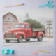 vintage red truck Christmas, red truck with Christmas tree, red barn winter scene, snowy country road artwork, rustic farmhouse Christmas decor, RHDesigns Crew Farm, holiday truck wall art, festive country Christmas, nostalgic winter landscape, snow-covered pine trees, rustic wooden signpost, cardinal bird holiday illustration, farmhouse holiday printable, winter decoupage paper design, cozy country Christmas aesthetic, rural Christmas artwork, traditional holiday countryside, Christmas tree in pickup truck, Americana Christmas scene, southern farmhouse holiday style