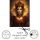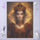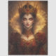 A powerful monarch appears in a richly detailed portrait surrounded by warm golden light and intricate royal adornments. Wearing an elaborate crown set with deep crimson jewels and a gown decorated with ornate patterns, the elegant ruler commands attention with striking intensity. The glowing atmosphere and luxurious details give the artwork a dramatic storybook quality filled with fantasy and regal symbolism. This imaginative illustration brings together elegance, mystery, and timeless royal presence in a captivating fantasy portrait.
