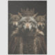 A crowned wolf stands in regal splendor, draped in gold and flanked by two shadowed companions. Their symmetrical stance and ornate attire evoke dominance, nobility, and mystic power. Set against a dark backdrop, this commanding trio is perfect for decoupage, mixed media, or furniture art that explores gothic elegance, animal symbolism, and fantasy storytelling.