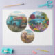 Celebrate rustic charm and floral beauty with this vibrant set of decoupage rounds. Featuring two 12-inch designs and one 8-inch round, each piece showcases a vintage pickup truck nestled in lush countryside scenes. From a cheerful yellow truck parked among sunflowers and a Highland cow crowned with blooms, to turquoise-blue trucks surrounded by zinnias, daisies, and wildflowers — these rounds evoke nostalgic Americana with a whimsical twist. Perfect for seasonal crafts, farmhouse décor, or springtime projects, each design blends rural storytelling with vivid color and heartwarming detail.