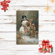 Embrace the charm of a peaceful snowy woodland with this heartwarming winter vignette. A cheerful snowman, dressed in a classic black top hat accented with holly and a cosy plaid scarf, greets two gentle deer in a snowy forest setting. One deer nuzzles the snowman's carrot nose with curious affection, while a spotted fawn lingers close by, creating a tender moment of rustic enchantment.