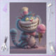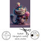 whimsical grinning fantasy cat, mischievous storybook cat art, magical fantasy cat illustration, playful ice cream cat character, whimsical fantasy animal artwork, enchanted storybook cat design, colorful fantasy cat illustration, imaginative fantasy creature art, fantasy decoupage craft paper, wonderland inspired fantasy artwork