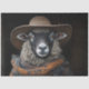 Capture the unique charm of this stylishly dressed sheep, sporting a cosy knitted sweater and a rustic brown hat. Set against a dark backdrop, this whimsical portrait highlights the adorable and fashionable side of farm life. Perfect for adding a touch of cuteness and rustic charm to any collection.