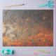 The image shows a textured surface with a faux finish that mimics the appearance of rusted and weathered metal. The surface features a blend of colours, including shades of orange, brown, gold, and black, creating a realistic and visually striking effect. The texture appears rough and uneven, with areas that look like peeling paint or corroded metal. This type of finish is often used in interior design and art to add an industrial or aged aesthetic to a space or object.