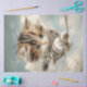 Add a touch of playful elegance to your next project with this beautifully detailed kitten illustration. With its expressive eyes, delicate lace collar, and soft fur, this feline friend balances gracefully on a rope against a dreamy, cloud-kissed sky. Perfect for furniture accents, journal covers, or mixed-media art, this design brings a storybook charm to any surface.