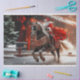 Dressed in his classic red suit, Santa mounted Midnight, his sack of gifts securely fastened behind him. The snowflakes fell gently around them, creating a magical winter wonderland. As they galloped through the forest, the sound of Midnight’s hooves echoed softly in the crisp night air.