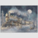 Winter steam train artwork, magical holiday locomotive print, reindeer and train illustration, snowy forest Christmas scene, RHDesigns festive canvas, moonlit train journey art, glowing lantern lodge décor, rustic winter wonderland collage, enchanted holiday decoupage paper, vintage Christmas railroad image