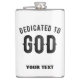 DEDICATED TO GOD COOL CUSTOMIZABLE BLACK TEXT HIP FLASK