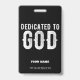 DEDICATED TO GOD COOL CUSTOMIZABLE WHITE TEXT ID BADGE