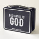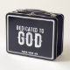 DEDICATED TO GOD COOL CUSTOMIZABLE WHITE TEXT METAL LUNCH BOX