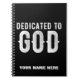 DEDICATED TO GOD COOL CUSTOMIZABLE WHITE TEXT NOTEBOOK