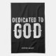 DEDICATED TO GOD COOL CUSTOMIZABLE WHITE TEXT TEA TOWEL