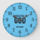 DEDICATED TO GOD CUSTOMIZABLE BLUE COOL BLACK TEXT LARGE CLOCK
