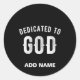 DEDICATED TO GOD CUSTOMIZABLE COOL WHITE TEXT CLASSIC ROUND STICKER