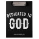DEDICATED TO GOD CUSTOMIZABLE COOL WHITE TEXT CLIPBOARD