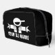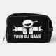 DeeJay toiletry travel bag with custom DJ name. Personalised Dopp Kit . Black and white design.
