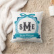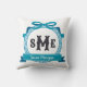 Deep Aqua Blue Greek Key Bow Monogram Cushion