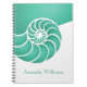 A custom nautical notebook design featuring a deep aqua nautilus shell and personalised name. Replace the sample name shown in the design template with your desired name or other text.