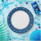 Deep azure blue with white polka dots in circular pattern.. Centre is solid white with encircled in silver. Fun geometric pattern. Original Design by TamiraZDesigns.