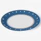 Deep Azure Blue Geometric White Polka Dots Paper Plate