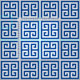 Deep blue and white Greek Key repeating alternating squares pattern.