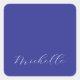 Deep Blue Colour Plain Modern Own Name Calligraphy Square Sticker