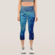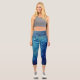 Deep Blue Decorative Leaves Capri Leggings