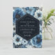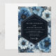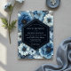 Rich indigo and sky blue blooms create a dramatic and romantic atmosphere. This design evokes a feeling of sophisticated elegance with its deep, moody floral arrangement. Perfect for a timeless and opulent occasion.